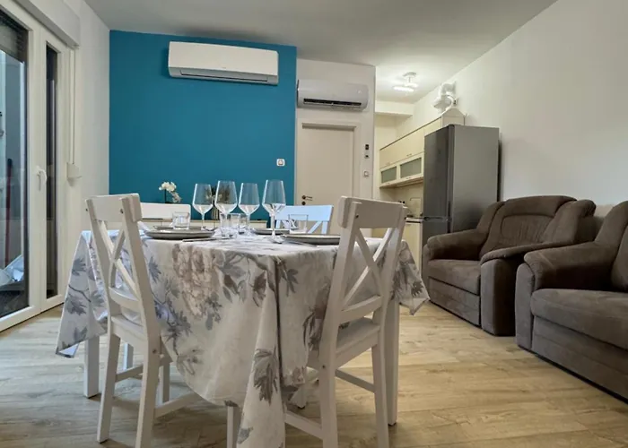 Brezza Marina Theme Park of the Great War of Monfalcone'den arabayla 10 dakikalık sürüş uzaklığında bulunan denize nazır bir dairedir. Bu denize nazır dairede 1 yatak odası, 1 banyo odası ve tam donanımlı mutfak mevcuttur.